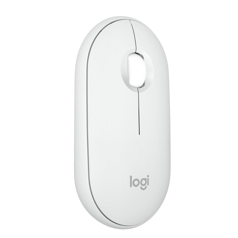 Logitech Pebble 2 M350s. Form factor: Ambidextrous. Movement detection technology: Optical, Device interface: RF Wireless + Bluetooth, Movement resolution: 4000 DPI, Buttons type: Pressed buttons, Buttons quantity: 3, Scroll type: Wheel. Power source: Batteries. Product colour: White